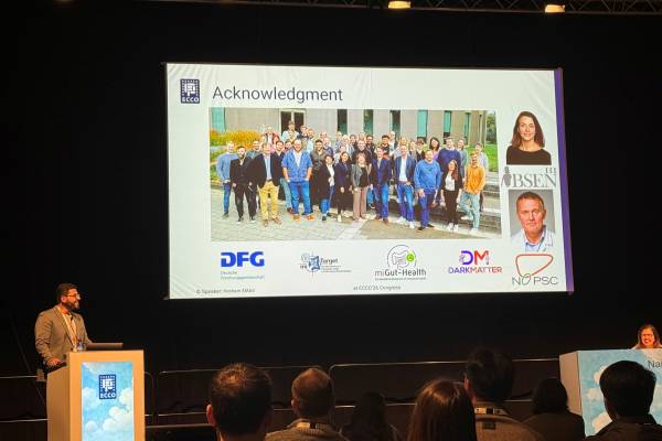 Within the Scientific Programme, partners presented major studies and research on predictive protein signatures in newly diagnosed ulcerative colitis, presented by Olle Grännö (Örebro University). Johan Burisch (Hvidovre Hospital) chaired a session on Fundamental and Translational Science in IBD where Hesham ElAbd (IKMB) presented his abstract “T cell receptor alpha repertoire profiling reveals a distinct immune landscape in primary sclerosing cholangitis compared with inflammatory bowel disease.”