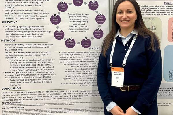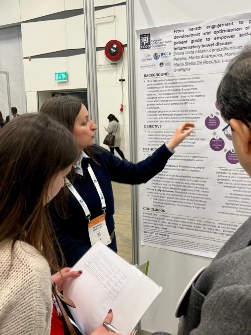 The International Federation of Crohn’s and Ulcerative Colitis Associations was present with its booth in the exhibition area, actively engaging with the global IBD community. IFCCA also presented a poster on the Engage IBD Guide, developed within miGut-Health to empower patients through accessible, personalised and evidence-based information. This strong patient-centred presence highlighted the project’s commitment not only to scientific excellence, but also to meaningful patient involvement and impact.